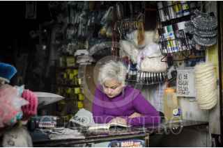 MEXICO, D.F., 02ENERO2013.- Al inicio del año 2013, las ventas en comercios de la Ciudad de México se mantienen bajas debido a la poca afluencia de personas en las calles. En la imagen, la encargada de un local de herramientas aprovecha el tiempo muerto para leer un libro. FOTO: EMILIANO RUVAL / CUARTOSCURO.COM