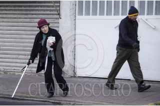 MEXICO, D.F., 03ENERO2013.- El Servicio Metereológico Nacional (SMN), alertó a la población de la República Mexicana a tomar precauciones por el mal tiempo que se encuentra en el país a consecuencia del frente frío no. 19. En la imagen, una señora bien abrigada camina hacia su trabajo. FOTO: EMILIANO RUVAL / CUARTOSCURO.COM