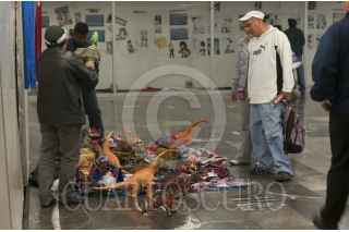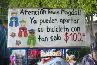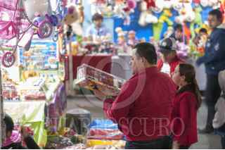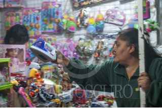 TEXCOCO, ESTADO DE MÉXICO, 03ENERO2013.- Comerciantes de Texcoco instalaron puestos con juguetes en la explanada municipal para que los padres acudan a comprar y regalar a sus hijos el 6 de enero, día de los Reyes Magos. Los vendedores exigen a las autoridades permitir instalarse en el lugar donde tradicionalmente instalan sus puestos ya que hay temor de que los granaderos los desalojen del jardín municipal. FOTO: DIEGO SIMÓN SÁNCHEZ /CUARTOSCURO.COM