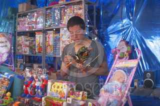 MEXICO, D.F., 03ENERO2013.- El Mercado de "La Bola" en la colonia Pedergal de Santo Domingo comenzó la venta de Reyes Magos 2013, en la cual se muestran en su mayoría juguetes importados, los locatarios de "La Bola" no se muestran optimistas ya que el Sábado se instalaráa un lado el mega tianguis de juguete con lo cual esperan poca afluencia este 5 de Enero. FOTO: FRANCISCO RODRÍGUEZ / CUARTOSCURO.COM