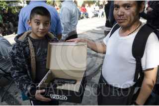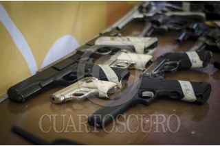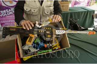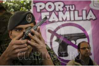 MÉXICO, D.F., 03ENERO2013.- Un niño acompañado de su mamá acude a entregar sus armas de juguete durante el programa de entrega de armas voluntarias de habitantes de la delegación Iztapalapa. El programa busca incentivar con una pequeña remuneración económica a las personas que entreguen cual quier tipo de armas de fuego. Cabe resaltar que en lo que el programa se han entregado más de mil armas de fuego según datos de la dependencia gubernamental. FOTO: EMILIANO RUVAL / CUARTOSCURO.COM