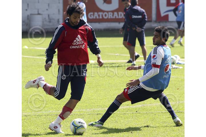 ZAPOPAN, JALISCO, 03ENERO2013.- Jugadores durante el entrenamiento de las Chivas Rayadas del Guadalajara en las instalaciones de Verde Valle, lugar donde se presentó como nuevo Director Técnico al estratega, Benjamín Galindo, quien dirigió hoy su primer entrenamiento de cara a la primera fecha del Torneo Clausura 2013 de la Liga MX. FOTO: FERNANDO CARRANZA / CUARTOSCURO.COM