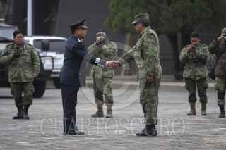 APODACA, NUEVO LEÓN, 04ENERO2013.-En una ceremonia de protesta el General Salvador Gutiérrez Plascencia asumió el cargo de Comandante de la Séptima Zona Militar en sustitución de Alfredo Flores Gómez. En el acto realizado en el 22 Batallón Militar el Comandante de la Cuarta Región Militar Noé Sandoval fue el encargado de tomar protesta a la nueva autoridad, además se contó con la presencia del Procurador de justicia Adrián de la Garza, el Gobernador del estado Rodrigo Medina, entre otros. FOTO: GABRIELA PÉREZ MONTIEL /CUARTOSCURO.COM