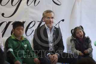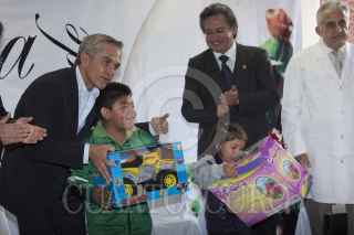 MÉXICO, D.F., 05ENERO2013.- El Jefe de Gobierno del Distrito Federal, Miguel A. Mancera acudió al Hospital de Especialidad Pediátirico de Tacubaya para entregar juguetes a los niños, acompañado del Secretario de Salud, Armando Ahued exhortó a los Reyes Magos a regalar juguetes que fomenten el ejercicio y a la convivencia en familia. Minutos antes ambos funcionarios realizaron un recorrido privado donde se atiende a casi un centenar de menores de edad que sufrieron quemaduras de 2do a 3er grado. Durante su discurso el jefe de gobierno subrayó la calidad y atención asi como el grado de especialidad que maneja el nosocomio. FOTO: FRANCISCO RODRÍGUEZ / CUARTOSCURO.COM