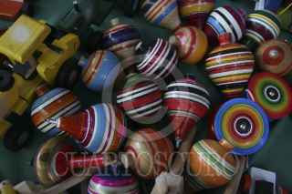 OAXACA, OAXACA, 05ENERO2013.- Los avances tecnológicos y los nuevos modelos de juguetes han dejado en el olvido los juguetes clásico, hechos a base de madera, los cuales difícilmente compiten contra los que se ofrecen actualmente en los super mercados. Trompos, títeres, valeros, entre otros son desplazados y difícilmente se venden, acusaron comerciantes que se resisten a dejar la tradición familiar. FOTO: ARTURO PÉREZ ALFONSO /CUARTOSCURO.COM
