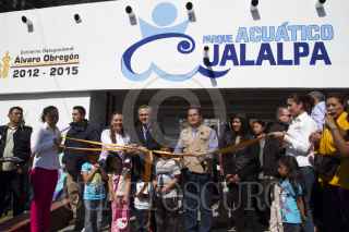 MÉXICO, D.F., 06ENERO2013.- Miguel Ángel Mancera, jefe de Gobierno del Distrito Federal, encabezo la ceremonia de inauguración del Parque Acuático, Jajalpa 2000 acompañado de Leonel Luna Estrada, Jefe Delegacional de Álvaro Obregón. FOTO: GUILLERMO PEREA /CUARTOSCURO.COM