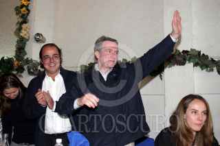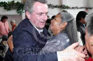 MEXICO, D.F., 27JUNIO2005.- Fernando Aboitiz, delegado en la Miguel Hidalgo, Santiago Creel, precandidato panista a la presidencia de la República y Gabriela Cuevas, asambleísta panista, durante una reunión que el ex-secretario de Gobernación sostuvo con personas adultas mayores en un restaurante de la colonia Veronica Anzures. FOTO: Moisés Pablo/CUARTOSCURO.COM