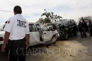 TEPOZTLÁN, MORELOS, 08ENERO2013.- En la carretera Cuernavaca -Morelos, a la altura del kilómetro 12.5, dos autos colisionaron de frente, cuando uno de ellos trato de rebasar, el incidente dejó un saldo de una mujer muerta y tres heridos. FOTO: ALMA LAFAYET /CUARTOSCURO.COM