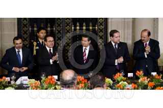 MÉXICO, D.F., 08ENERO2013.- Enrique Peña Nieto, Presidente de México, durante su discurso en la comida de clausura de los trabajos de la XXIV Reunión de Embajadores y Cónsules de México que se realizó en el salón Tesorería de Palacio Nacional y ante la presencia de secretarios de estado y gobernadores. FOTO: MISAEL VALTIERRA / CUARTOSCURO.COM