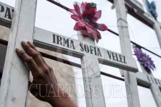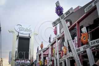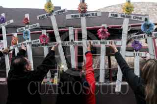 MONTERREY, NUEVO LEÓN, 08ENERO2013.- Tras el retiro de las cruces que se encontraban en el Casino Royale, familiares de las víctimas asistieron esta tarde al lugar en donde nuevamente fueron colocadas las 52 cruces que representan a los fallecidos. Autoridades de Derechos Humanos del estado de Nuevo León estuvieron presentes. FOTO: GABRIELA PÉREZ MONTIEL / CUARTOSCURO.COM