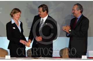 MEXICO, D.F., 27JUNIO2005.- Vicente Fox Quesada, presidente de la República, inauguró la 15 Mesa Redonda con el Gobierno de México "Prosperidad, Democracia y Cambio", organizada por The Economist Conferences en un hotel de Av. Reforma. FOTO: Moisés Pablo/CUARTOSCURO.COM