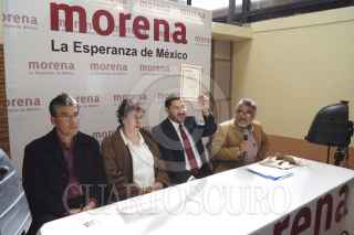 MÉXICO, D.F., 09ENERO2013.- Fue inaugurada la sede del Comité Ejecutivo Nacional del Movimiento de Regeneración Nacional (MORENA), en la calle de Santa Anita de la colonia Viaducto Piedad. Además, en conferencia de prensa presentaron el plan de financiamiento para el partido. FOTO: ADOLFO VALTIERRA /CUARTOSCURO.COM