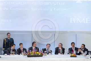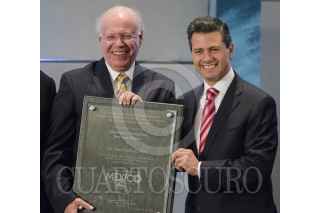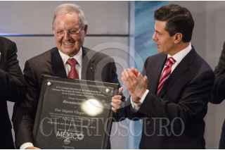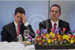 MÉXICO, D.F., 11ENERO2013.- Enrique Peña Nieto, Presidente de México, le toman una foto a su salida de la comida por el 95 aniversario de la Concanaco Servytur. A la comida asistieron diversas personalidades del mundo empresarial. FOTO: MISAEL VALTIERRA / CUARTOSCURO.COM