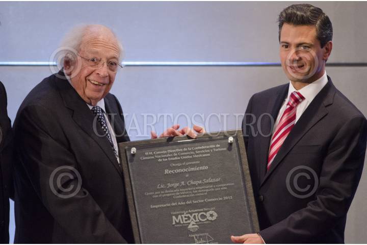 MÉXICO, D.F., 11ENERO2013.- Enrique Peña Nieto, Presidente de México, le toman una foto a su salida de la comida por el 95 aniversario de la Concanaco Servytur. A la comida asistieron diversas personalidades del mundo empresarial. FOTO: MISAEL VALTIERRA / CUARTOSCURO.COM
