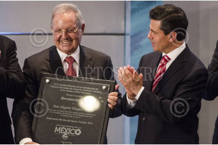 MÉXICO, D.F., 11ENERO2013.- Enrique Peña Nieto, Presidente de México, le toman una foto a su salida de la comida por el 95 aniversario de la Concanaco Servytur. A la comida asistieron diversas personalidades del mundo empresarial. FOTO: MISAEL VALTIERRA / CUARTOSCURO.COM