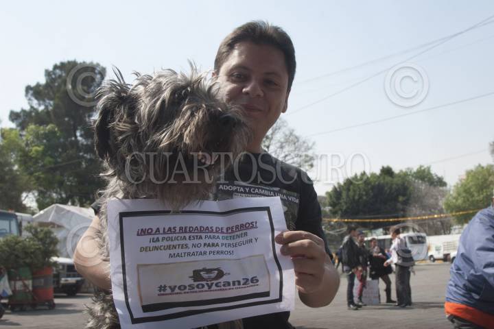 MÉXICO, D.F., 12ENERO2013.- Diversas organizaciones defensoras de los derechos de los animales volantearon a las afueras del edificio Delegacional de Iztapalapa para hacer conciencia sobre la compra de mascotas, su cuidado y responsabilidad, posteriormente marcharon a las faldas del cerro de la Estrella donde pidieron el fin a las redadas contra perros callejeros, esto derivado de las conclusiones de la PGJDF que dictó que una jauría de cánidos atacó y mató cuatro personas en dicho lugar el mes pasado. FOTO: FRANCISCO RODRÍGUEZ / CUARTOSCURO.COM