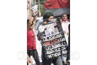 MÉXICO, D.F., 12ENERO2013.- Diversas organizaciones defensoras de los derechos de los animales volantearon a las afueras del edificio Delegacional de Iztapalapa para hacer conciencia sobre la compra de mascotas, su cuidado y responsabilidad, posteriormente marcharon a las faldas del cerro de la Estrella donde pidieron el fin a las redadas contra perros callejeros, esto derivado de las conclusiones de la PGJDF que dictó que una jauría de cánidos atacó y mató cuatro personas en dicho lugar el mes pasado. FOTO: FRANCISCO RODRÍGUEZ / CUARTOSCURO.COM