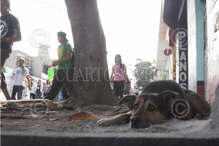MÉXICO, D.F., 12ENERO2013.- Diversas organizaciones defensoras de los derechos de los animales volantearon a las afueras del edificio Delegacional de Iztapalapa para hacer conciencia sobre la compra de mascotas, su cuidado y responsabilidad, posteriormente marcharon a las faldas del cerro de la Estrella donde pidieron el fin a las redadas contra perros callejeros, esto derivado de las conclusiones de la PGJDF que dictó que una jauría de cánidos atacó y mató cuatro personas en dicho lugar el mes pasado. FOTO: FRANCISCO RODRÍGUEZ / CUARTOSCURO.COM