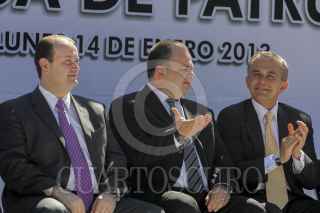 MÉXICO, D.F., 14ENERO2013.- Miguel Ángel Mancera, jefe de gobierno del Distrito Federal, acompañado de Jesús Rodríguez Almeida, Secretario de Seguridad Pública del Distrito Federal, Rodolfo Ríos Garza, procurador de justicia del D.F., y el delegado de Iztapalapa, Jesús Valencia, entregaron 39 patrullas que serán operadas por 204 elementos en la demarcación. FOTO: SAÚL LÓPEZ / CUARTOSCURO.COM