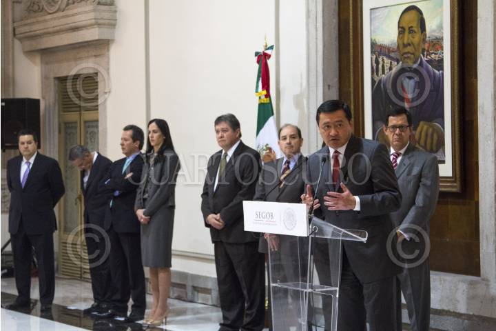 MÉXICO, D.F., 14ENERO2013.- Miguel Ángel Osorio Chong, Secretario de Gobernación, durante la conferencia ante los medios de comunicación donde presentó a Jaime Martínez Veloz como encargado de la Comisión para el Dialogo de los Pueblos Indígenas. FOTO: ENRIQUE ORDÓÑEZ /CUARTOSCURO.COM