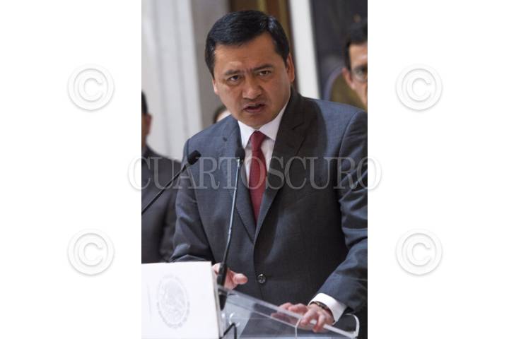 MÉXICO, D.F., 14ENERO2013.- Miguel Ángel Osorio Chong, Secretario de Gobernación, durante la conferencia ante los medios de comunicación donde presentó a Jaime Martínez Veloz como encargado de la Comisión para el Dialogo de los Pueblos Indígenas. FOTO: ENRIQUE ORDÓÑEZ /CUARTOSCURO.COM