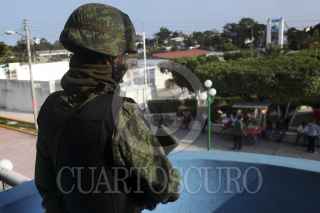 URSULO GALVÁN, VERACRUZ., 14ENERO2012.- Elementos del Ejercito Mexicano y la Policía Estatal realizan recorridos de vigilancia luego de que 8 uniformados de la Policía Municipal de Ursulo Galván desaparecieran el pasado viernes y el resto de la corporación desertara luego de los hechos, así mismo, las fuerzas federales implementaron la búsqueda de los desaparecidos encontrando únicamente la patrulla calcinada en el municipio de Vega de Alatorre. FOTO: FÉLIX MÁRQUEZ /CUARTOSCURO.COM
