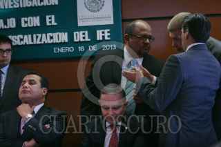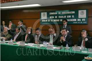 MÉXICO, D.F. 16ENERO2013.- Integrantes de la comisión de Investigación y Revisión de funcionamiento de la Condusef, encargada de investigar caso Monex en la cámara baja, se reúnen en mesa de trabajo con el titular de la Unidad de Fiscalización del IFE, Alfredo Cristalinas, a quien cuestionan sobre el avance de las pesquisas. A la reunión estaba convocado originalmente el titular de la CONDUSEF, Mario Di Constanzo, sin embargo, ante la inasistencia del el ex diputado por el opositor Partido del Trabajo (PT), se decidió desahogar ese punto próxima reunión de la comisión. FOTO: JUAN PABLO ZAMORA /CUARTOSCURO.COM
