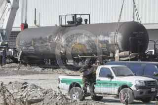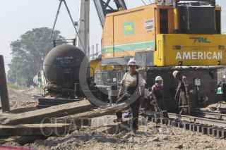 ECATEPEC, ESTADO DE MÉXICO,16ENERO2013.- Un tren procedente de Veracruz que transportaba aceite vegetal y semillas se descarriló en la zona industrial de Santa Clara en el municipio de Ecatepec, no se registraron personas lesionadas, sólo daños materiales, al lugar acudieron personal de ferrocarriles mexicanos,, protección civil, bomberos policía municipal, estatal y militares. FOTO: SAÚL LÓPEZ /CUARTOSCURO.COM