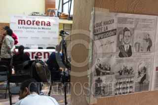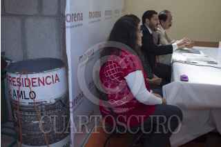 MÉXICO, D.F., 16ENERO2013.- Martí Batres Guadarrama, Dirigente Nacional de MORENA, durante la conferencia que realizó en la sede del partido donde dio a conocer su propuesta de plan de austeridad para evitar el alza del IVA donde su principal forma de recaudación de dinero es bajando el sueldo a políticos y funcionarios públicos a demás de vender el avión presidencia recaudando así al menos 300 millones de dólares aproximadamente. FOTO: ENRIQUE ORDÓÑEZ /CUARTOSCURO.COM
