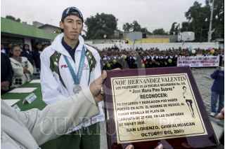 CHIMALHUACAN, ESTADO DE MÉXICO, 16ENERO2013.- El medallista Olímpico en Sidney 2000, Noé Hernández; murió a la edad de 34 años victima de un paro cardiaco en un hospital de Chimalhuacan tras complicaciones que tuvo por la mañana en su salud según informó la Secretaria de Seguridad Ciudadana. Noé Hernández el 5 de Octubre del 2000 asistió a la escuela secundaria No. 35 “José María Pino Suarez” donde maestros y alumnos le realizaron un homenaje luego de su llegada a México con su medalla de Plata en la categoría de Caminata de 20 kms. Durante ese día Noé también compartió un día en su casa con sus seres queridos entre ellos sus padres quienes se mostraron orgullosos por los logros obtenidos a lo largo de su vida. FOTO: PEDRO MERA /ARCHIVO /CUARTOSCURO.COM