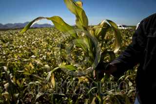 LOS MOCHIS, SINALOA, 17ENERO2013.- Debido a las bajas temperaturas registradas en el norte del estado de Sinaloa el gobierno estatal calcula que unas 19 mil personas han resultado afectadas pues 35 mil hectáreas de maíz y garbanzo presentan perdidas totales. El secretaria de agricultura. Juan Guerra se reunió con productores para realizar un recorrido por las zonas afectadas. FOTO: RASHIDE FRIAS /CUARTOSCURO.COM