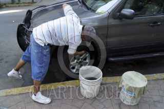 MÉXICO, D.F., 17ENERO2013.- Personas que se dedican a cuidar y lavar automóviles en las calles de la Condesa. El próximo domingo 20 de enero se realizará la consulta ciudadana para decidir la instalación de Parquimetros en las colonias Condesa y Roma. En las calles se pueden apreciar distintas mantas con la invitación a votar por la aceptación y algunas otras por la negativa. FOTO: ADOLFO VALTIERRA /CUARTOSCURO.COM