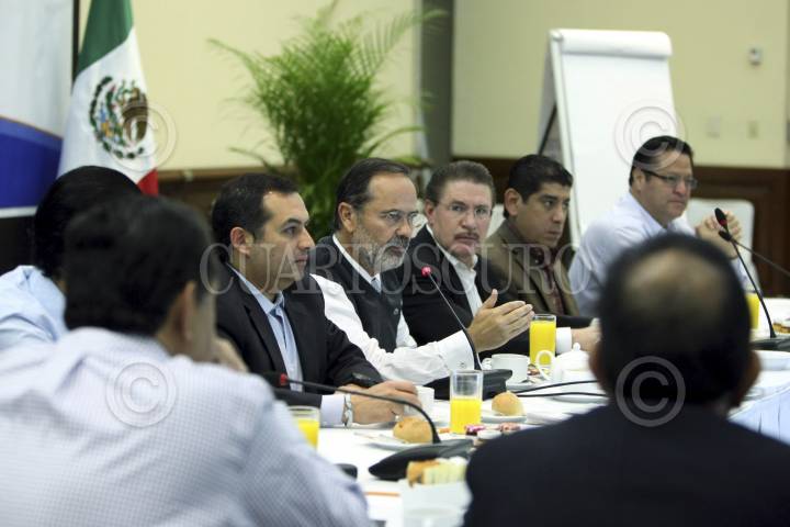 PUEBLA, PUEBLA, 17ENERO2013.- Las senadoras panistas Sonia Mendoza Díaz, Mariana Gómez del Campo, Silvia Guadalupe Garza, Adriana Dávila Fernández, y Laura Angelica Rojas Hernández, se toman la foto del recuero al concluir su reunión plenaria. FOTO: CUARTOSCURO.COM