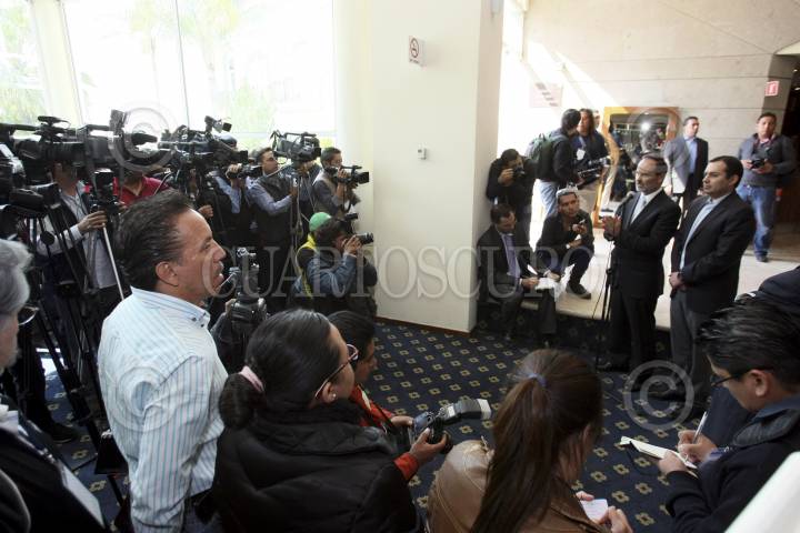 PUEBLA, PUEBLA, 17ENERO2013.- Las senadoras panistas Sonia Mendoza Díaz, Mariana Gómez del Campo, Silvia Guadalupe Garza, Adriana Dávila Fernández, y Laura Angelica Rojas Hernández, se toman la foto del recuero al concluir su reunión plenaria. FOTO: CUARTOSCURO.COM