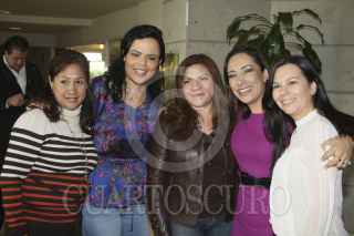 PUEBLA, PUEBLA, 17ENERO2013.- Las senadoras panistas Sonia Mendoza Díaz, Mariana Gómez del Campo, Silvia Guadalupe Garza, Adriana Dávila Fernández, y Laura Angelica Rojas Hernández, se toman la foto del recuero al concluir su reunión plenaria. FOTO: CUARTOSCURO.COM