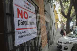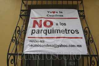 MÉXICO, D.F., 17ENERO2013.- Vecinos de la colonia Condesa, colocaron mantas en contra de la instalación de parquimetros en calles de la colonias Roma y Condesa. FOTO: SAÚL LÓPEZ /CUARTOSCURO.COM