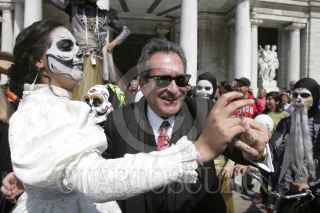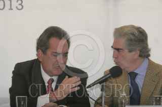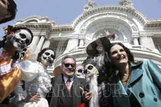 MÉXICO, D.F., 17ENERO2013.- Carlos Lozano de la Torre, gobernador de Aguascalientes y su esposa Blanca Rivera Río de Lozano del DIF, al final del anuncio del Homenaje Nacional que CONACULTA y el Gobierno de Aguascalientes realizarán a José Guadalupe Posada a partir del 20 de enero en la ciudad de Aguascalientes, lugar de nacimiento del creador de "La catrina". FOTO: JUAN PABLO ZAMORA /CUARTOSCURO.COM
