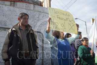 MÉXICO, D.F., 18ENERO2013.- Vecinos, locatarios del Mercado de San Pedro Martir y miembros de la Coordinadora Metropolitana de Movimientos Populares, clausuraron de manera simbólica la cosntrucción de un Wal-Mart que se pretende erigir en el corazón del pueblo de San Pedro Martir y tan solo a unos metros del mercado tradicional. FOTO: FRANCISCO RODRÍGUEZ /CUARTOSCURO.COM