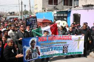CHIMALHUACAN, ESTADO DE MÉXICO, 18ENERO2013.- Con una misa y una procesión por barrios de Chimalhuacan, amigos, familiares y habitantes del municipio le dieron el último adiós al marchista olímpico, Noe Hernández, que fue sepultado en el panteón de Xochiaca. FOTO: SAÚL LÓPEZ /CUARTOSCURO.COM