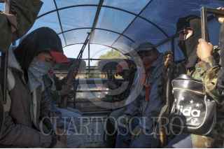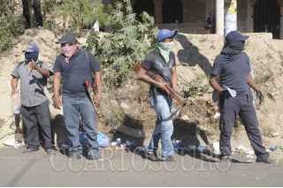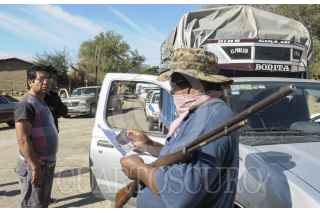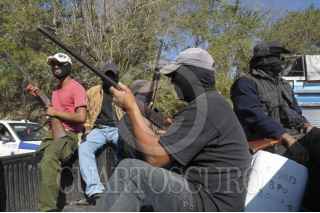 AYUTLA, GUERRERO, 18ENERO2013.- Habitantes del pueblo El Pericón detuvieron a 4 personas vinculadas con el crimen organizado, acusados de cometer ejecuciones, levantones, extorsiones y amenazas a los habitantes de la región. Los habitantes impidieron que el presidente de la Comisión Estatal de Defensa de los Derechos Humanos (Coddehum), Juan Alarcón Hernández, se entrevistara con los 44 presos, para saber en qué condiciones se encuentran. Al llegar al reten de la comunidad, a los trabajadores de la CDHEG y periodistas se les impidió el paso al pueblo en donde están los detenidos por el movimiento de los ciudadanos levantados en armas en contra de la delincuencia organizada desde el 6 de enero. Los presos en los retenes y en los operativos de los civiles armados se encuentran en condiciones que aún no se ha podido establecer debido a que hasta ahora solamente algunos de los familiares de estos han podido verlos, incluso han asegurado que algunos de ellos tienen huellas de torturas. En acuerdo con el Gobierno del Estado, la Comisión de Derechos Humanos y la dirigencia de la Unión de Pueblos y Organizaciones del Estado de Guerrero, hubo el compromiso para que hoy los detenidos fueran visitados y tomar su declaración. Sin embargo los dirigentes del movimiento en este municipio, de última hora, informaron que los habitantes del pueblo y los familiares de las víctimas habían cambiado la decisión y se negaron a que se reuniera con ellos. "No queremos que los defiendan porque son gente que nos están exprimiendo, sobre la pobreza nos están exprimiendo... porque tenemos una vaquita quieren que les estemos cooperando, y a todos los camioneros también les están pidiendo cooperación, toda la gente ya estamos siendo victimas de la delincuencia”, denunciaban mujeres del pueblo. Otra mujer joven comentaba, “hay muchos jóvenes a los que los han matado y no hacen justicia los que están allá, los soldados y todos los que deben hacer justicia, por eso les pedimos a todos ustedes que lleven todo esto, que no quede borrado”, expuso, cuando atrás se escuchaba un coro de protestas no entendibles porque mujeres gritaban al mismo tiempo. FOTO: BERNANDINO HERNÁNDEZ /CUARTOSCURO.COM