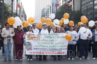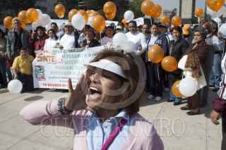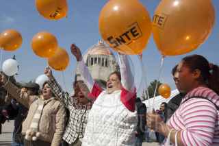MÉXICO, D.F., 19ENERO2013.- Maestros del Sindicato Nacional de Trabajadores de la Educación Sección11 iniciaron una jornada de protesta para mostrar su inconformidad por la Reforma Laboral y en defensa de la escuela pública, los profesores organizaron un mitin informativo en el Monumento a la Revolución. FOTO: MOISÉS PABLO /CUARTOSCURO.COM