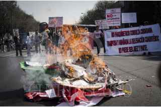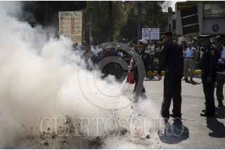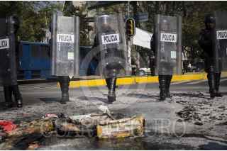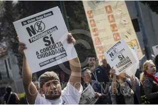 MÉXICO, D.F., 19ENERO2013.- Vecinos de las colonias Roma, Roma, Condesa y Anzures, se manifestaron bloqueando la vialidad sobre la avenida Gutemberg a la altura de la calle de Thiers para exigir al Gobierno de la Ciudad de México y de la delegación Cuauhtémoc la no instalación de parquímetros. FOTO: MISAEL VALTIERRA /CUARTOSCURO.COM