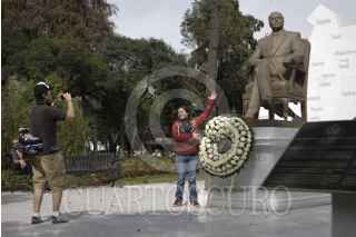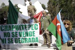 MÉXICO, D.F., 20ENERO2012.- Grupos vecinales, principalmente de Polanco y Lomas de Chapultepec, ambientalistas y defensores de los derechos humanos realizaron un picnic informativo alrededor de la estatua de Heydar Aliyev, en el parque localizado en el Bosque de Chapultepec, para exigir que la pieza sea retirada por considerar al ex presidente de Azerbaiyán como " un dictador" FOTO: IVAN STEPHENS /CUARTOSCURO.COM