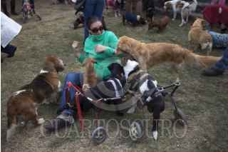 MÉXICO, D.F., 20ENERO2013.- El santuario Milagros Caninos ubicado al sur de la ciudad es un lugar creado por Patricia Ruiz quien tuvo la idea de proteger a canes que han sido encontrados en situación de maltrato por parte del humanos. El Santuario busca que “El mejor amigo del hombre” y quizás en algunas ocasiones su peor pesadilla del perro, pasen una vida tranquila y a gusto a base de cuidados médicos y terapias con amor que ayudan a mejorar su animo luego de todo el sufrimiento que recibieron en vida. A si mismo este lugar se mantiene a base de donativos en especie y económicos que la gente realiza al solidarizarse con la causa. En la ciudad muchos perros sufren de maltrato por lo que este lugar solo busca concientizar a la gente y ayudar a los a los que han sufrido en su vida. FOTO: ENRIQUE ORDÓÑEZ /CUARTOSCURO.COM