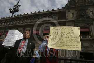 MÉXICO, D.F., 20ENERO2013.-Organizaciones civiles se manifestaron fuera de Palacio Nacional para exigir que se les asignen salarios mínimos a los funcionarios públicos. FOTO: JUAN PABLO ZAMORA /CUARTOSCURO.COM