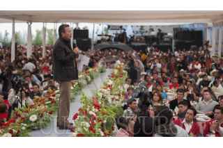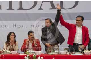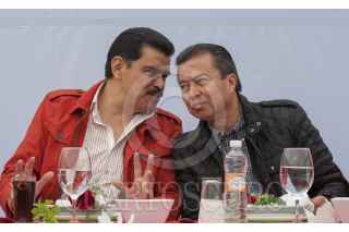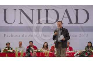 PACHUCA, HIDALGO 20ENERO2013.- En compañía del gobernador José Francisco Olvera Ruiz y del presidente del Comité Directivo Estatal del PRI, Ricardo Crespo Arroyo, el presidente del CEN, César Camacho, participó en el llamado "Acto de la Unidad Priista".Ante más de siete mil 500 agremiados. FOTO: CUARTOSCURO.COM