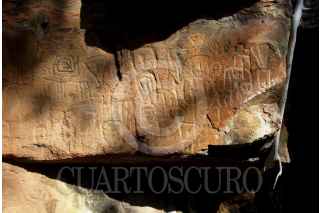 TEPIC, NAYARIT, 21ENERO2013.- Arqueólogos del Instituto Nacional de Antropología e Historia (INAH-Conaculta) localizaron recientemente en el sitio conocido como “Cantil de las ánimas”, cercano a la población de Jesús María Cortés, en Tepic, Nayarit, un complejo panel de petrograbados que debieron ser tallados entre 850 y 1350 d.C., es decir, algunos de ellos tendrían una antigüedad de más de mil años. Su registro y estudio permitirán profundizar en el conocimiento de los ritos relacionados con el ciclo ceremonial de la antigua cultura Aztatlán, que se desarrolló en el occidente de México. FOTO: INAH / CUARTOSCURO.COM