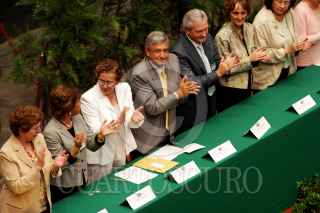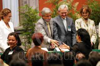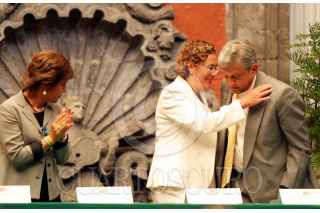 MEXICO, DF 05JULIO2005.- Martha Pérez Bejarano directora del DIF-DF, la contralora general del GDF Bertha Elena Lujan, el jefe de gobierno del DF, Andrés Manuel López Obrador en la ceremonia en el museo de la ciudad de México donde se tomó protesta a los nuevos contralores ciudadanos. FOTO:Miguel Dimayuga/CUARTOSCURO.COM