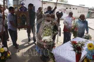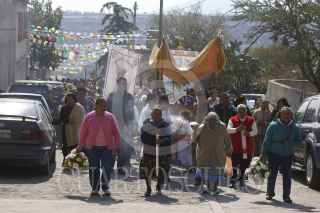 TEPEJI DEL RIO, HIDALGO, 23ENERO2013.- La comunidad hñähñü de San Ildelfonso, en Tepeji del Río, conmemoró este miércoles el 475 aniversario de su fundación con una misa y posterior procesión por las calles del pueblo. Esta localidad indígena vive una lucha contra la pérdida de sus tradiciones por la invasión urbana de la que padecen. De esta localidad surgió la querella que llegó a la SCJN para colocar diéresis en el Registro Civil a los nombres en lenguas indígenas, con el caso de la niña Döni Zänä. FOTO: FRANCISCO VILLEDA / CUARTOSCURO.COM