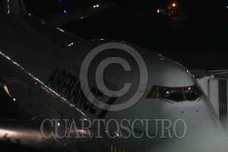 MÉXICO, D.F. 23ENERO2013.-Avión de la empresa AIR FRANCE en el que partió la recién liberada Florence Cassez, luego de ocultarse de los medios de comunicación y escoltada por patrullas de la Policia Federal en la pista del Aereopuerto. FOTO: JUAN PABLO ZAMORA /CUARTOSCURO.COM